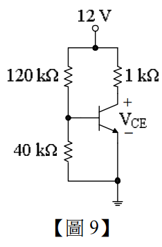 9.如【圖 9】所示之電路,BJT 之β = 100, 切入電壓為 0.7V,則 V