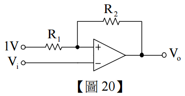 20.如【圖 20】所示,此為何種電路? (A)施密特觸發電路 (B)減法器電路 (C)非反相放大電路 (D)反相放大電路
