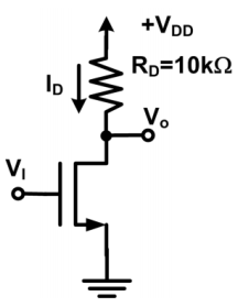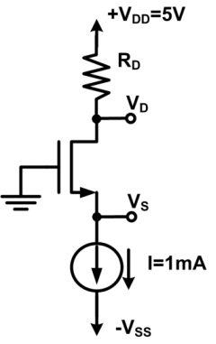 34.在【圖 34】的電路,NMOS 電晶體的臨界電壓(Threshold voltage)Vt=1V。電流源 I=1mA,V
