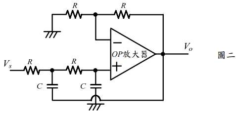 【已刪除】二、如圖二所示電路,假設其中OP放大器為理想放大器,試求其輸入V