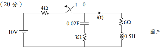 =0 時開關切離成開路,試求電流