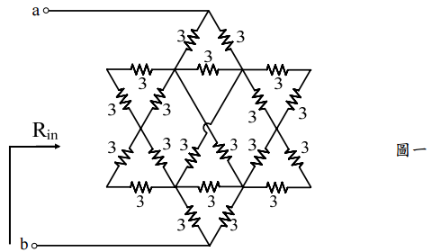 【已刪除】一、已知圖一所示電路中之電阻皆為 3 歐姆,求a、b兩端之等效電阻R