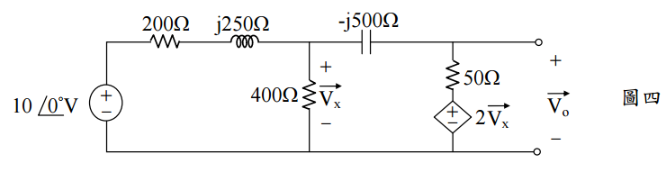 【已刪除】四、如圖四所示之弦波交流穩態電路,求其輸出電壓相量