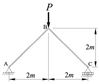 【已刪除】四、有一由兩相同鋼管經焊接組合而成之剛性構架,已知鋼管內部的直徑為 22 cm,而 外部的直徑為 25 cm。當外力 P=20 kN 時,試求構架中鋼管所受的最大拉應力及最 大壓應力。(20 分)