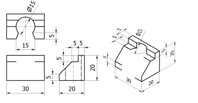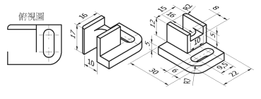 【已刪除】二、請依立體圖所示之尺度以比例 1:1 繪製其俯視圖、前視圖及左側視圖(不用標註 尺度)。(30 分)