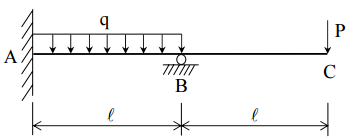 【已刪除】四、下圖所示之結構中,A點為固定端,B點為中間支承,梁上受有均布載重q及集中載 重P之作用,假設EI為定值,試計算C點之變位量δc。(20 分)