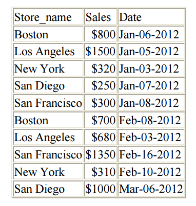 【已刪除】八、已知有一個資料庫檔案,稱為 Sales_Information,其 Attribtes 與儲存內容如下,請 寫出一個 SQL 指令要從表格中選出所有 Sales 高於$1,000(不含)或是 Sales 在$700 (含)及$320(含)之間的商店與售出金額表列,並請寫出執行結果。(13 分)