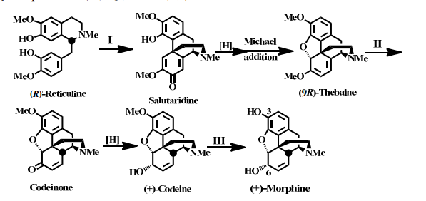 【已刪除】三、生合成 Morphine 之部分途徑示於下圖: