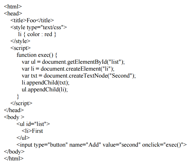 【已刪除】⑴下列網頁除內容外,也包含 CSS(cascading style sheet)指令與 JavaScript 程式碼。 請說明此網頁在瀏覽器的呈現效果(可繪圖說明),並解釋當按下網頁內的按鈕 (Add)時,網頁會有什麼變化。(10 分)