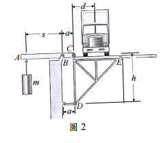 【已刪除】二、貨車在稱重台上進行稱重,如圖 2 所示,若稱重平台為空負載時,槓桿架ABC與稱 重平台CDE的自重保持平衡。當貨車停放於稱重平台CDE上,且貨車的重心與支點 C的距離為d(m)時,將已知質量為m(kg)的配重吊掛於槓桿架ABC的A點上時, 可保持平衡,且此A點與支點B的距離為s(m)。試求此貨車的質量mt為何?(圖 2 標示的尺寸單位皆為m)(25 分)
