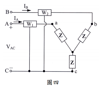 【已刪除】四、如圖四所示的平衡三相 Y 型負載電路,使用兩組瓦時表來量測負載消耗的功率,若 負載阻抗 Z= 10∠ 45° Ω 、線電壓為 220 V rms,不考慮瓦時表及傳輸線產生的誤差, 求負載消耗的總功率。(20 分)