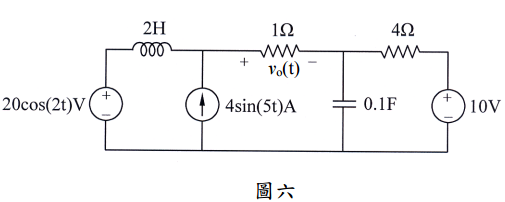 【已刪除】六、如圖六所示,若電源弦波振幅為峰值(peak value),求v