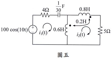 【已刪除】五、如圖五所示,若電源弦波振幅為峰值(peak value),求電流