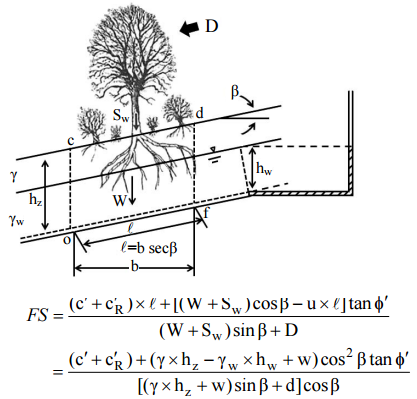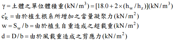 【已刪除】⑴試推導無限邊坡在植生情況下(如圖所示)之 FS。(FS 可表為下式) (10 分)