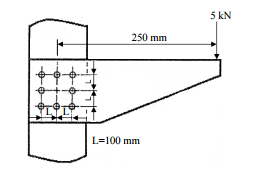 【已刪除】一、有 8 個鉚釘之鋼架鉚接於某一農機具如下圖所示,假設鉚釘之拉應力容許值(allowable tensile stress value)為 23 MPa,剪應力容許值(allowable shear stress value)為 12 MPa,求鉚釘所需之最小直徑?(25 分)