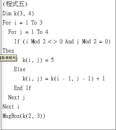 3、 陣列A內容如右圖,執行下行程式結果為何? MsgBox ( A(A(2,1)-2 , A(2,0)+1) ) (A) 4 (B) 2 (C) 1 (D) 0