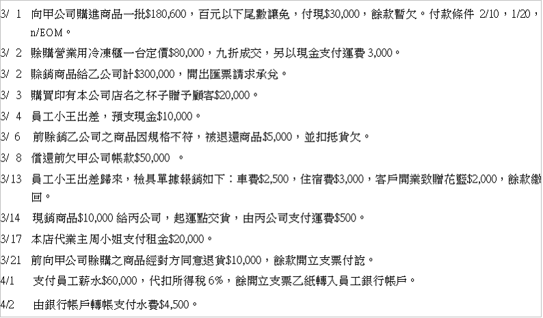 蘋果公司103年度3月交易資料如下,試完成日記簿之記帳程序: