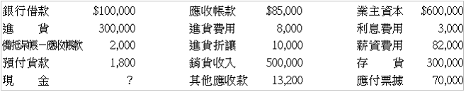 金吉利商店103年6月底的分類帳各帳戶餘額如下: