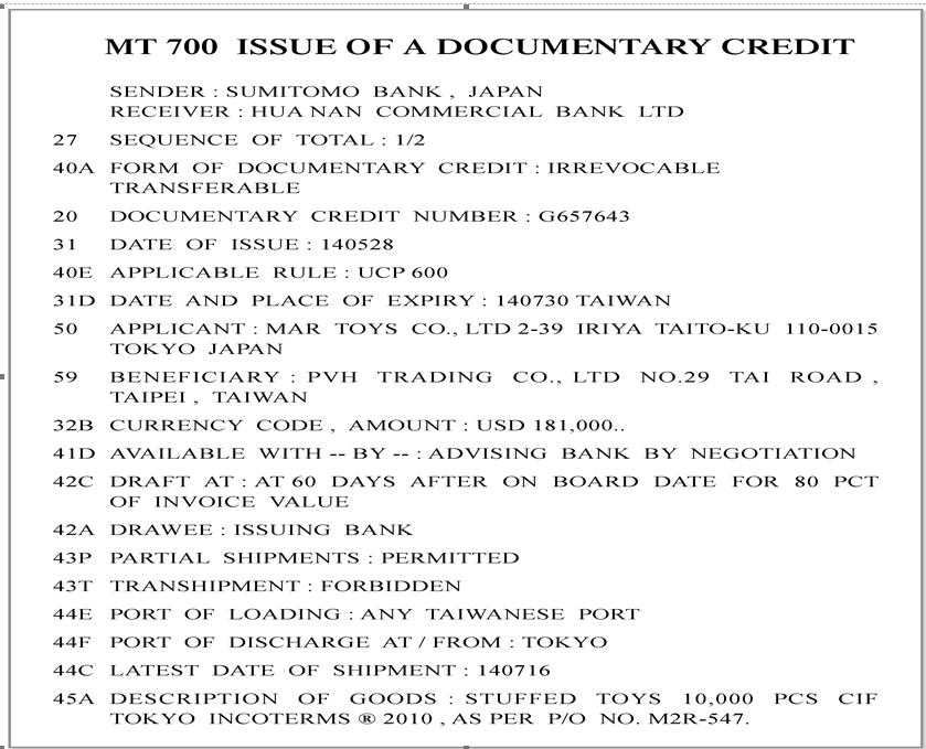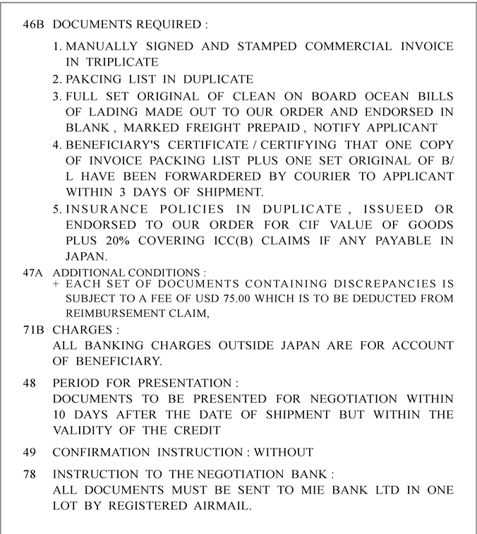 ★★憑信用狀交易時,若須檢附規定貨運單據防能順利辦理押匯,則稱此信用狀為:___(10)_____ 信用狀。