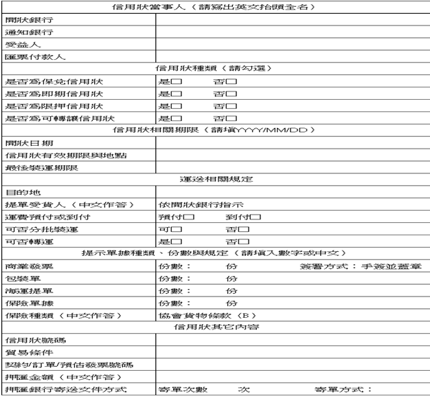 ★★信用狀補發應由信用狀受益人向 ___(2)__ 銀行提出申請,修改信用狀則應由信用狀申請人向 ___(3)__ 銀行提出申請。