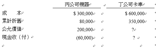 【已刪除】5. 丙丁兩公司交換資產(具商業實質),資料如下:試作丙丁兩公司交換資產之分錄。