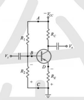 2. 利用敏阻器(sensistor)作溫度補償時,如下圖應放於何位置? (A)AB點位置 (B)AC點位置 (C)AD點位 置 (D)BC點位置。