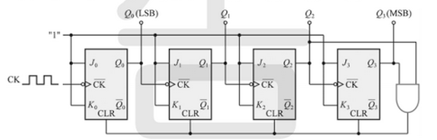3. 如下圖所示電路的計數模數(MOD)為多少? (A)12 (B)13 (C)14 (D)15。