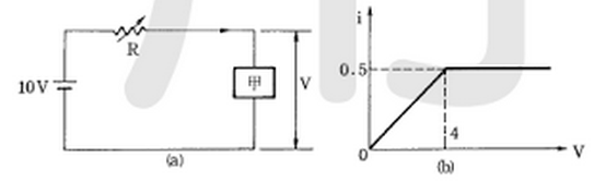 6. 如下圖(a)中,電路元件甲的i-V特性曲線如下圖(b)所示,試求當R=20Ω時,電路元件甲所消耗之功率 約為多少? (A)1.02 (B)1.12 (C)1.22 (D)1.32 瓦。
