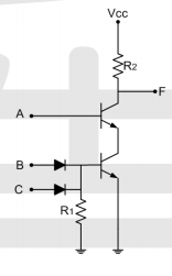 17. 如下圖所示的電路,其輸出端布林式 F (A,B,C )? = (A) ∑(1, 3, 4, 6, 7) (B) ∑(0,2,5) (C) ∑(1,3,4) (D)∑ (0,2,5,6,7) 。