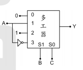 ( A ) 20. 如下圖所示之多工器應用電路,可以實現下列哪一布林表示式? (A) F(A,B,C,D)=π(0,2,6,7,8,10,11,12) (B) F(A,B,C,D)=π(0,5,6,7,8,9,14,15) (C) F(A,B,C,D)=π(1,2,3,4,10,11,12,13) (D) F(A,B,C,D)=π(1,3,4,5,9,13,14,15) 。