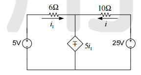 13. 如下圖所示電路,i 值應為多少? (A)0.5A (B)2.5A (C)5A (D)10A。