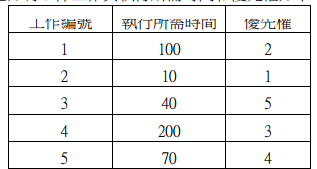 31.已知有 5 件工作其執行所需時間和優先權如下: