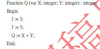 40.在下列程式片段中,X是使用傳參考(pass by reference)方式傳遞,Y是使用傳值(pass by value)方式傳遞,Q為一個回傳值為整數的函數: