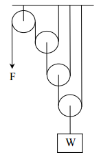 37 如圖所示之滑車系統,欲吊起 4000 N 之重物時,則應施加最少外力 F 為若干 N? F W (A)300 N (B)350 N (C)500 N (D)600 N