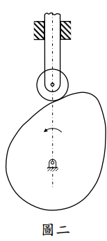 【已刪除】四、如圖二所示之盤形凸輪機構,請繪簡圖標示出該位置的壓力角(Pressure angle), 說明壓力角過大所產生的缺點,並提出二種減小壓力角的方法。(20 分)