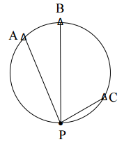 【已刪除】二、示意如下圖,A、B、C 為已知點,現擬採下列三法之一進行 P 點之定位: 1.觀測∠APC,及∠BPC, 2.觀測∠APC,及邊長 CP, 3.觀測∠BPC,及邊長 BP, 假設各觀測量之誤差相當,請探討何法可期望得到較高之 P 點定位精度。(20 分)