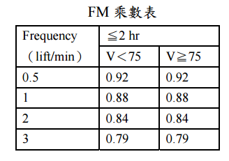 = 75 cm,且改為每分鐘 1 次,其他條件不變之下,RWL 值會變成 多少 kg?(20 分)