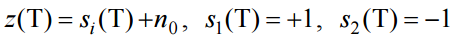 【已刪除】二、二位元通訊系統之傳送信號為si (t),(i =1,2) ,經由雜訊通道所接收之信號其判斷式可 表示為