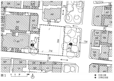 一、題目:都市填充—住商複合使用建築 二、題旨:都市環境的永續發展,理想狀態是長時間裡,以局部新陳代謝的方式,讓建 築物呈有機性的成長。然而短時間內大尺度的開發營建也會發生,結果常造 成對環境紋理及市民集體空間記憶的破壞。 為了確保集居環境品質的良性發展,個別地塊的營建行為,除了滿足其功能 外,更應扮演在環境成長中一健康基因的角色。 三、基地描述: 1.本次設計基地位於臺灣某城市內一條次要街道的西側。此街道兩側為地區性商店, 包括了餐飲、服飾、眼鏡行、診所、及超商等。 2.基地略呈方形,南北兩側為巷道,東臨社區公園,公園外側為街道。基地西面為 一日式的歷史住宅建築,近年修復成為一文學紀念館,並對外開放(見圖 1)。 3.基地面積 1,116 m2 ,位於住宅區內,使用分區為「住三」(容積率 225%,建蔽率 45%)。「住三」是都市內常見的住宅使用分區,當其基地面臨 8m(含 8m)以 上道路時,底層可以經營服飾、餐飲、書店等(見圖 2)。 ⑴建築計劃:(30 分) 本基地為某公益基金會所有。為提供鄰近地區學生及年輕家庭居住需求,計劃興 建一合宜住商建築,並以較市場為低的租金分租。原則如下: 1.營造無障礙及綠色生態的建築環境。 2.基金會受政府委託,同時負責西側文學紀念館之營運。紀念館的戶外空間可以 與本基地整體規劃,並對外開放。 3.本建築以提供出租單元為主,居住單元類型如下: 單身套房(1~2 人),室內實際面積 25 m2 ~30 m2 。 家庭 2 房(3~4 人),室內實際面積 60 m2 ~70 m2 。 以上兩種住宅單元數量各半。 4.地面層以商店出租。商店的類型自行擬定,並檢討與住宅空間的使用關係。 5.建築總面積不可超過法定容積(及依法規規定免計之相關面積)。為了環境品 質,容積亦可不全數使用,但以不少於法定容積之 80%為原則。 6.建築總樓地板面積除淨空間(室內空間)需求外,應合理判斷粗面積(公共空 間)的比例及數量。 7.基地內提供機車 20 輛,汽車 10 輛的停車需求。 根據以上題旨、基地描述、及計劃原則,請撰寫建築計劃書。內容包括目標願景、 基地分析、設計策略、空間概要(面積及屬性說明)、及營運管理。文字不超過 1,500 字,並可輔以圖像表達。