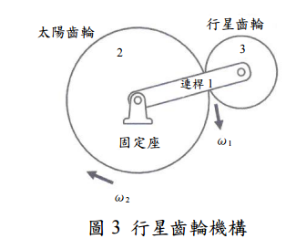 【已刪除】三、圖 3 為一行星齒輪機構,包括固定座、太陽齒輪 2(40 齒)、行星齒輪 3(20 齒)、 與連桿 1。若已知連桿 1 的轉速為 200 rpm(順時針),太陽齒輪 2 的轉速為 100 rpm(順時針),試求行星齒輪 3 的轉速與轉向為何?(20 分)