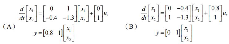 決定系統(A)的可控制性、可觀測性。(5 分) 決定系統(B)的可控制性、可觀測性。(5 分) 既是同一系統,為何有特性上的差異?試解釋之。(15 分)