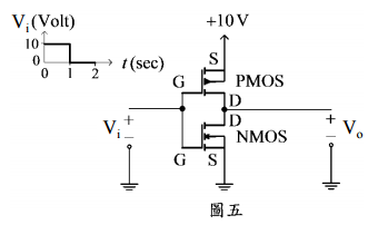【已刪除】五、如圖五所示之場效應電晶體電路,請繪出 0~2 秒之間 V