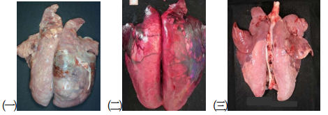 【已刪除】五、下圖肺臟均可被分離到放線桿菌(Actinobacillus pleuropneumoniae),但卻呈現不 同型態之肺炎病灶,請推斷由包括觸覺、可能之硬度與外觀病變,嘗試描述此三個 肺臟可能之病理與組織學上變化。(20 分)