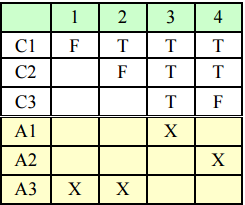 【已刪除】五、若一個軟體程式之輸入及輸出關係表示如下決策表(Decision table),其中 C 表示 條件,A 表示行動,T 表示條件為真,F 表示條件為假,X 則表示所欲採取之行動。 請問該程式須有幾個測試案例?請解釋之。(10 分)