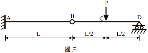 【已刪除】三、如圖三所示一靜定梁,試繪出該梁結構受力後之剪力圖及彎矩圖。(25 分)