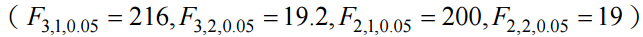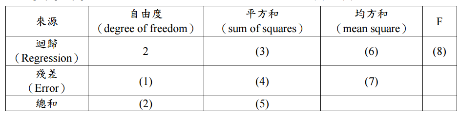 【已刪除】⑷給定α = 0.05,利用 F 統計量檢定 :