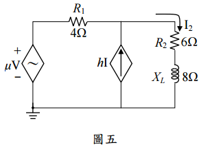 ,其中 V = 10 V∠0˚, I = 20 mA∠0˚,μ = 20,h = 100。(20 分)