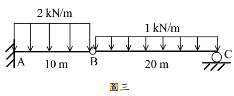 【已刪除】三、試繪圖三所示梁結構之剪力圖與彎矩圖。(25 分)