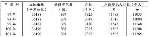 【已刪除】五、試求 99 年及 101 年的戶量、人口密度與人口增加率,並寫出各項的單位。(20 分)