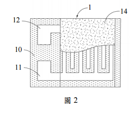 1. 先前技術 1:揭示一種一氧化碳(CO)氣體感測器,如圖 1 所示,圖 1 係揭示一種一氧化 碳氣體感測器(1)的示意圖,其包括一基板(11),其具有一上表面(111)。而在基板(11)之 上表面(111)的不同位置,分設有第一梳型電極(121)、第二梳型電極(122)、第一焊墊(123) 以及第二焊墊(124),其中,第一梳型電極(121)與第二梳型電極(122)彼此交錯但並未連 接,且兩者之一端分別連接於第一焊墊(123)與第二焊墊(124),分別形成兩組互相獨立 之電極。此外,一氣體感測薄膜(即二氧化錫層)(13)覆蓋第一梳型電極(121)與第二梳 型電極(122),且氣體感測薄膜(13)亦形成在介於第一梳型電極(121)與第二梳型電極(122) 之間之基板(11)的上表面(111)。